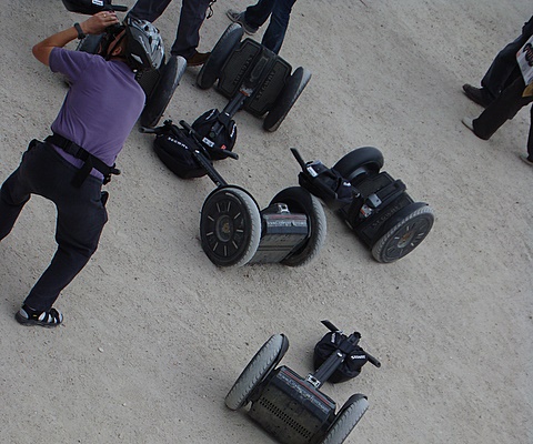 Dan doe je dus 'n rondrit door Parijs op 'n Segway. Dat is echt al ongelofelijk Nerderig. En als je dan even 'n rustpauze hebt om van 'n parkje te genieten, wat doe je dan? Ja precies, dan ga je foto's van elkaar op de Segway maken.