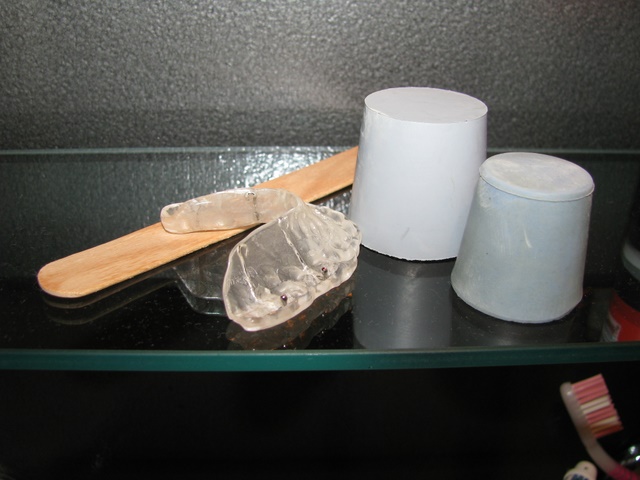 Een paar jaar geleden had ik er al eens last van: ik kreeg m'n kaken niet meer goed van elkaar. Toen dat niet over ging, heb ik kaakfysiotherapie gehad. Ja, dat is een specialisatie. En ik kreeg van de tandarts een splint aangemeten (dat bitje) tegen klemmen. Het ging gelukkig redelijk snel over.