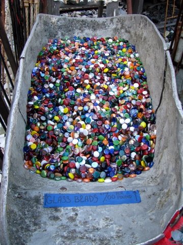 Sorry hoor, maar als ik zo'n kruiwagen zie vol met mooie, glanzende 'ogen' dan moet ik er wat van hebben. Waarvoor? Geen idee, om in een vaas op tafel te zetten?