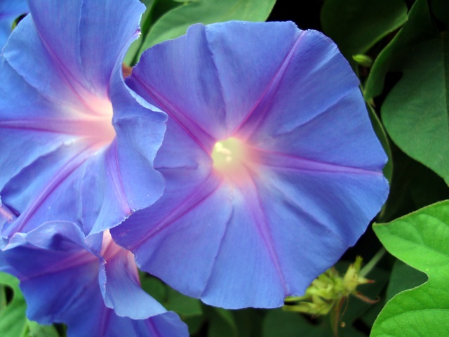 Direct naast de oranje bloem van gisteren, stond deze vrolijke blauwe collectie. Ik heb enorm m'n best gedaan om 'm niet te overbelichten, maar dat wit in het midden is vrij lastig.