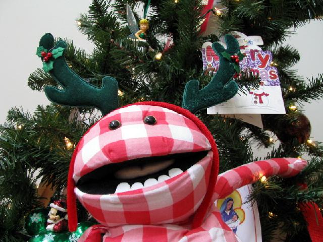 Heftig kerstfeestje... Mr Jummie is in de kerstboom beland.