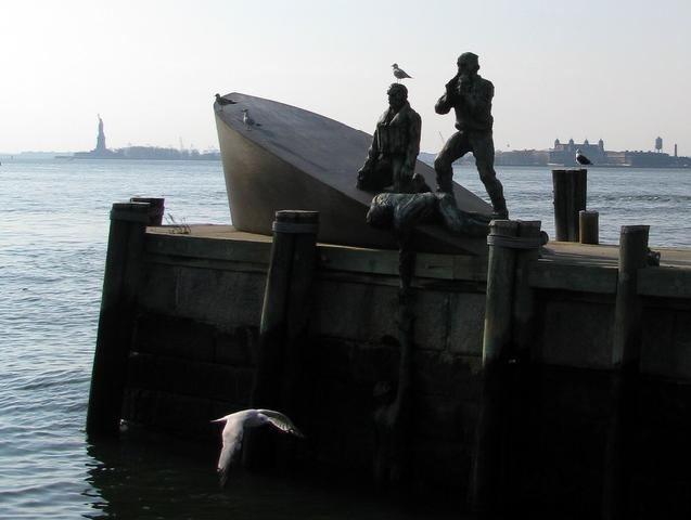 Dit is het Merchant Mariner's Memorial, een monument in New York ter nagedachtenis van de duizenden Amerikaanse zeelieden op koopvaardijschepen die zijn gesneuveld in oorlogstijd. Dit zijn geen militairen, maar burgers die op commerciele zeeschepen werkten. Deze koopvaardijschepen verlenen ten tijde van oorlog hand- en spandiensten voor de Amerikaanse marine, zoals het vervoeren van goederen en marinepersoneel.