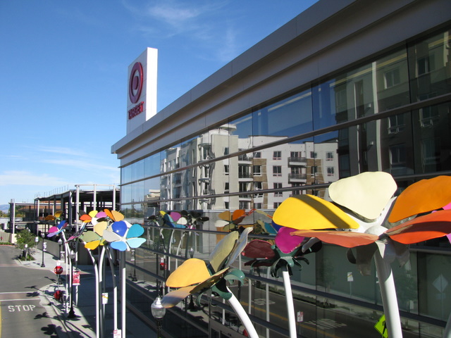 Ik houd wel van dit soort kunst: grote fleurige bloemen in een winkelstraat.