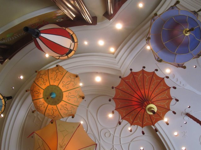Deze kunstige plafondlampen kwamen we tegen in het Wynn-hotel in Las Vegas.